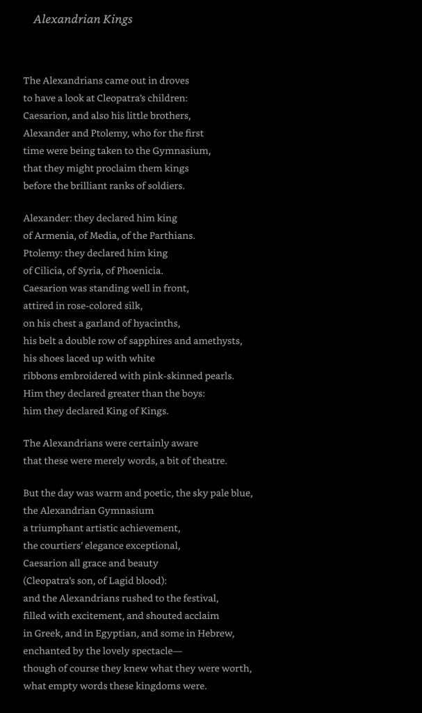 - C. P. Cavafy (Mendelsohn translation)